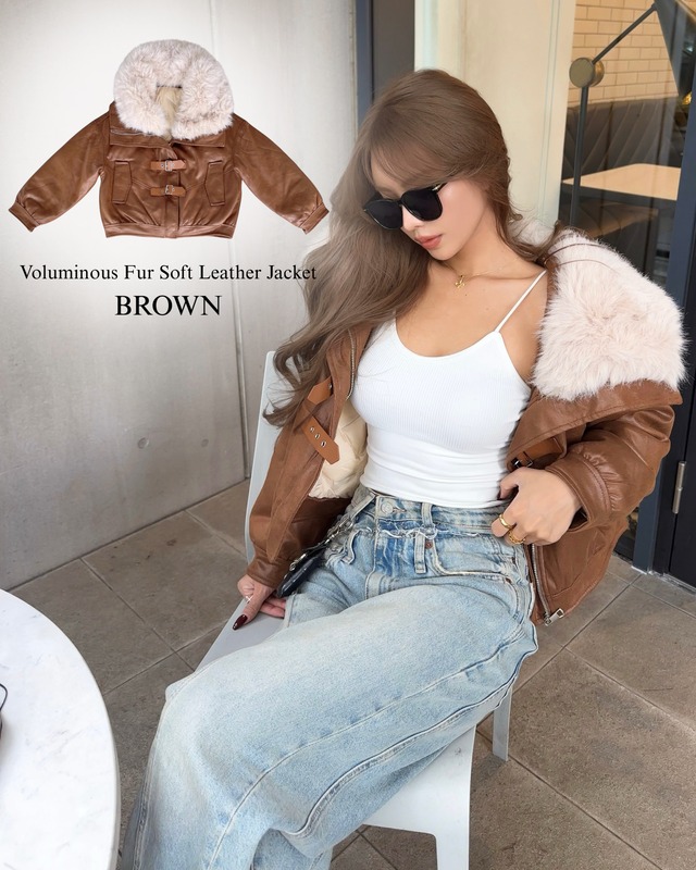 【NEW】Voluminous Fur Soft Leather Jacket ブラウン