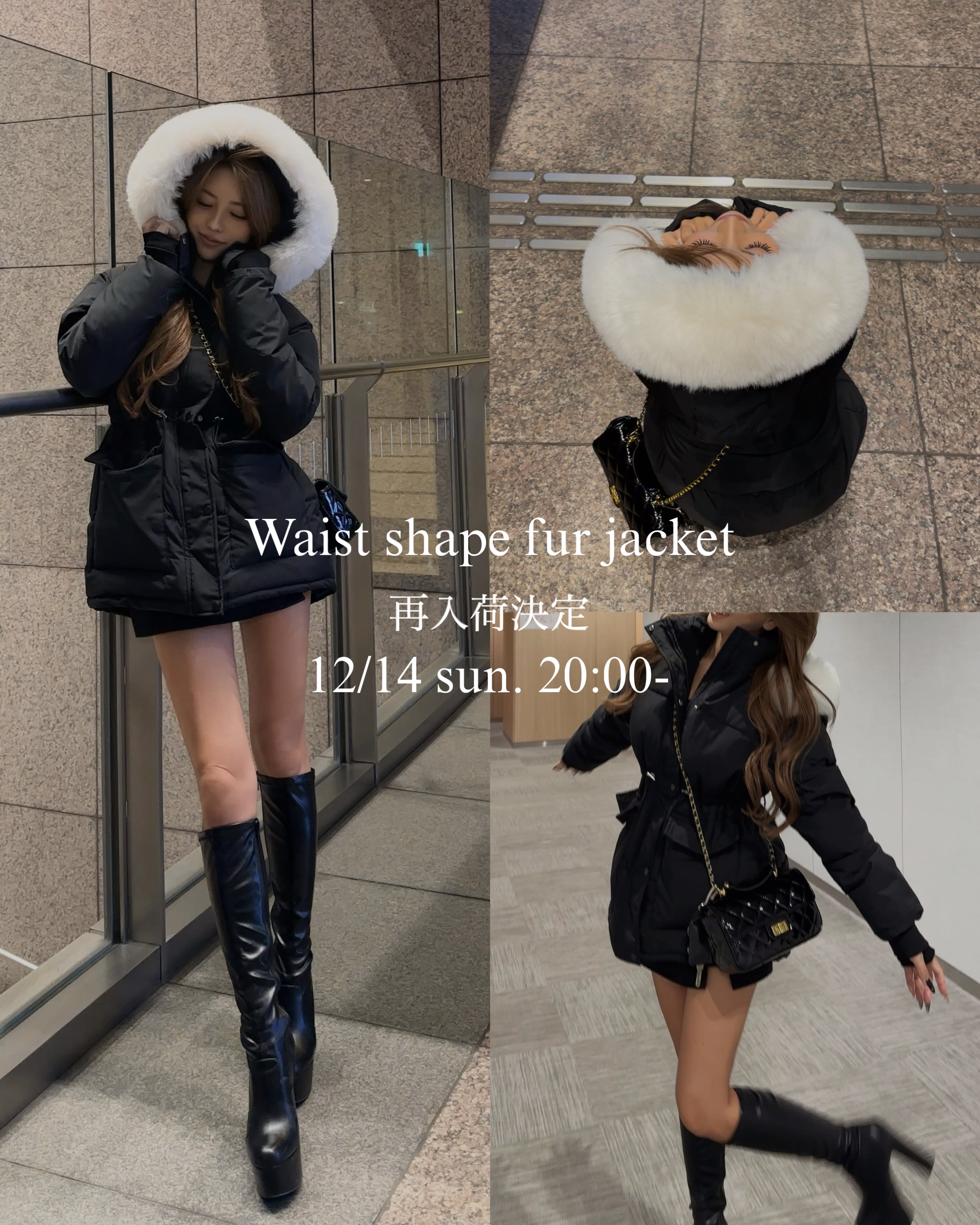 ──────────────── 【再入荷について】 12/14 sun. 20:00- 再販開始 ──────────────── 【デザイン・シルエット】 ウエストが調節可能となっているため 綺麗なくびれ・Aラインをお作りいただけます。 フードにあしらったエコファーでコーデが華やかに。 【POINT】 ウエストのクビレはベルトで作るのではなく、ドロスト仕様となっているため、前を開けて着用した状態でも前後ろ横どこから見ても綺麗なクビレが爆誕します。 【カラー】全2カラー ◻︎Black × White fur ◻︎Black × Black fur 裏地:あり ポケット:あり ボタン:あり 生地の厚さ:厚手 【サイズ】F 着丈:前73cm、後ろ77cm 肩幅:46cm 身幅:52cm 袖丈:56cm 【モデル着用サイズ】 モデル身長:155cm、着用サイズ:F モデル身長:160cm、着用サイズ:F ★ファーは取り外し可能 ※ファーは素材の特性上、毛が抜けやすく、他の衣類に付着する可能性がございますが、着用回数を重ねると毛抜けは徐々に安定します。 表裏地:ポリエステル100% 中綿:ポリエステル100% エコファー:ポリエステル100% 【発送予定目安】 ご注文から3日以内(土日祝除く) 【お支払い方法】 クレジットカード決済、あと払い、Amazon Pay、d払い、auかんたん決済、ソフトバンク/ワイモバイルまとめて支払い 【注意事項】 ・当店の紹介及び利用規約を必ずご確認くださいませ。 ・ご入力いただいた住所に誤りがある場合、「発送保留」となり最短でのお届けができなくなってしまいます。また、発送後「住所不備」で返送される場合がございます。 ご入力の際は、必ずご確認をお願い致します。 例)〇〇区のあとに続く地域名の未入力、部屋番号の未入力 など ・お使いのモニターによって、カラーが違って見える場合がございますので予めご了承ください。 【お取り扱いについて】 https://gienge.official.ec/p/00003