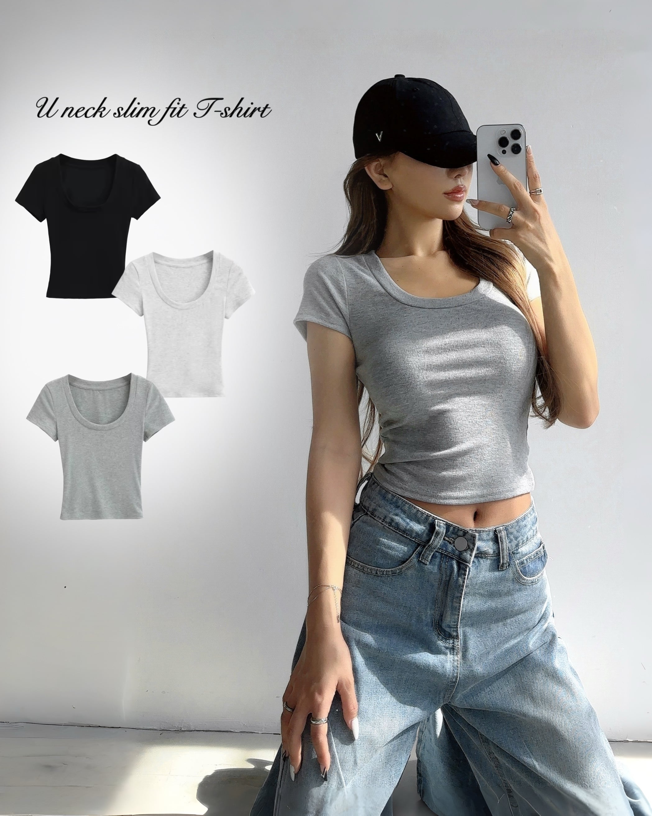 ◻︎UネックデザインのクロップドTシャツ
