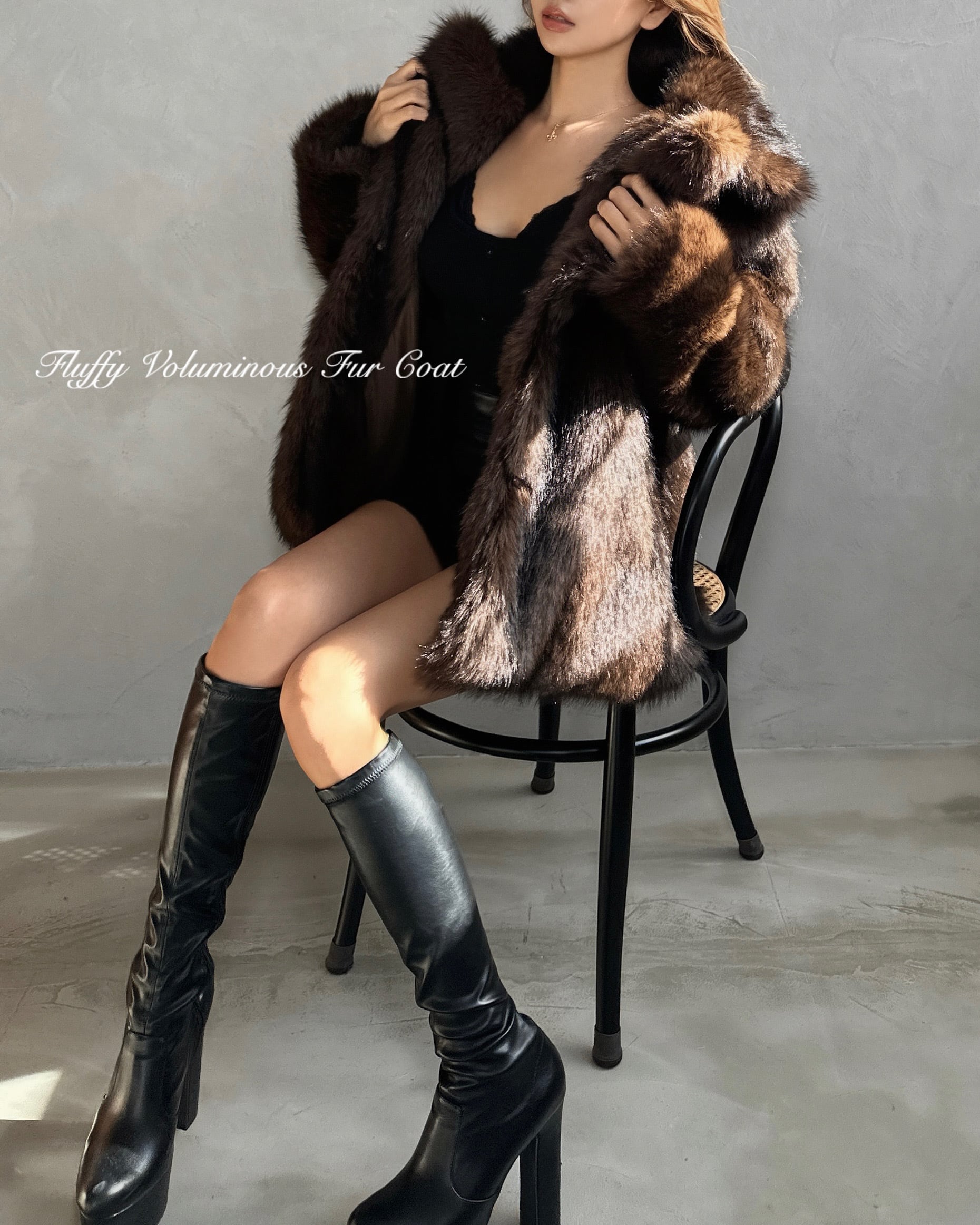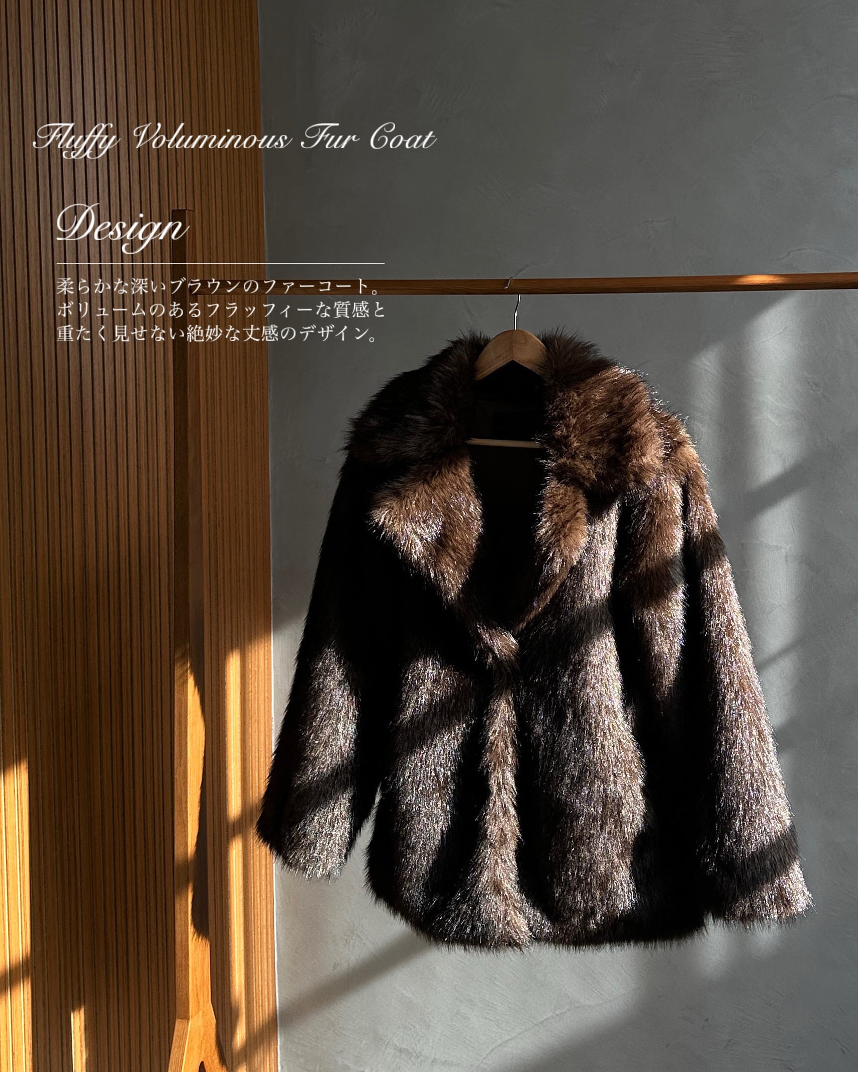 【NEW】Fluffy Voluminous Fur Coat ブラウン
