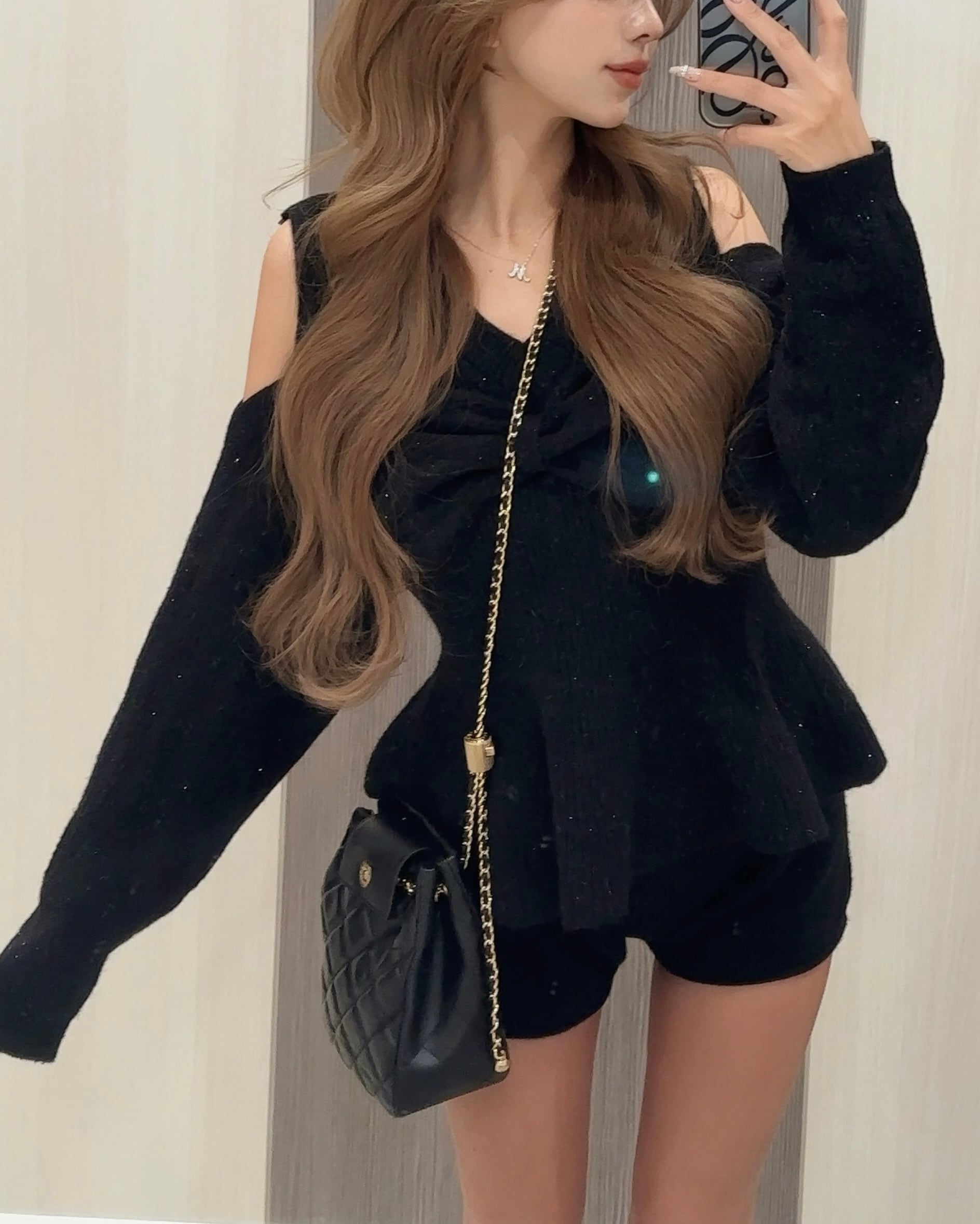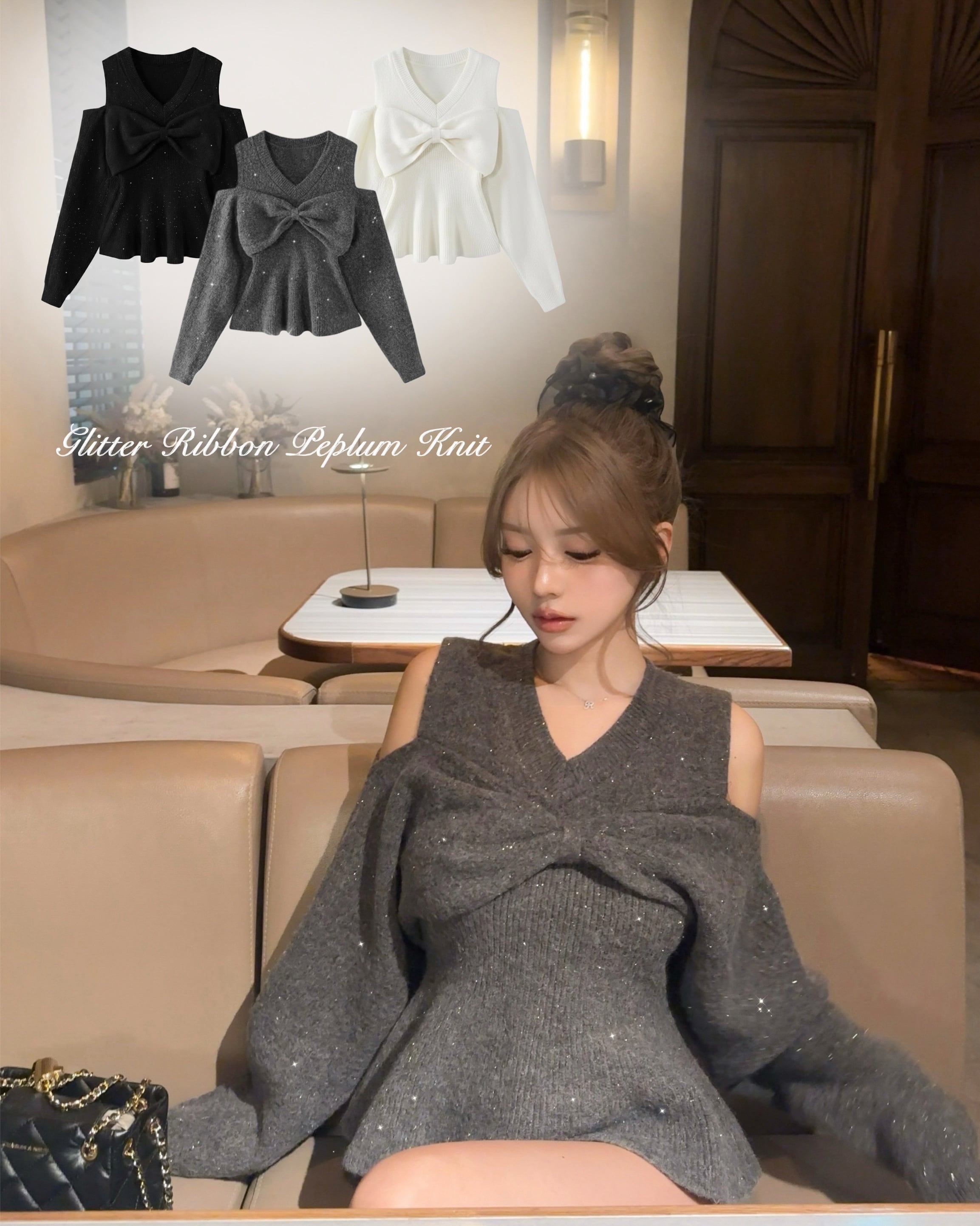 【再入荷/即納】Glitter Ribbon Peplum Knit【3カラー】