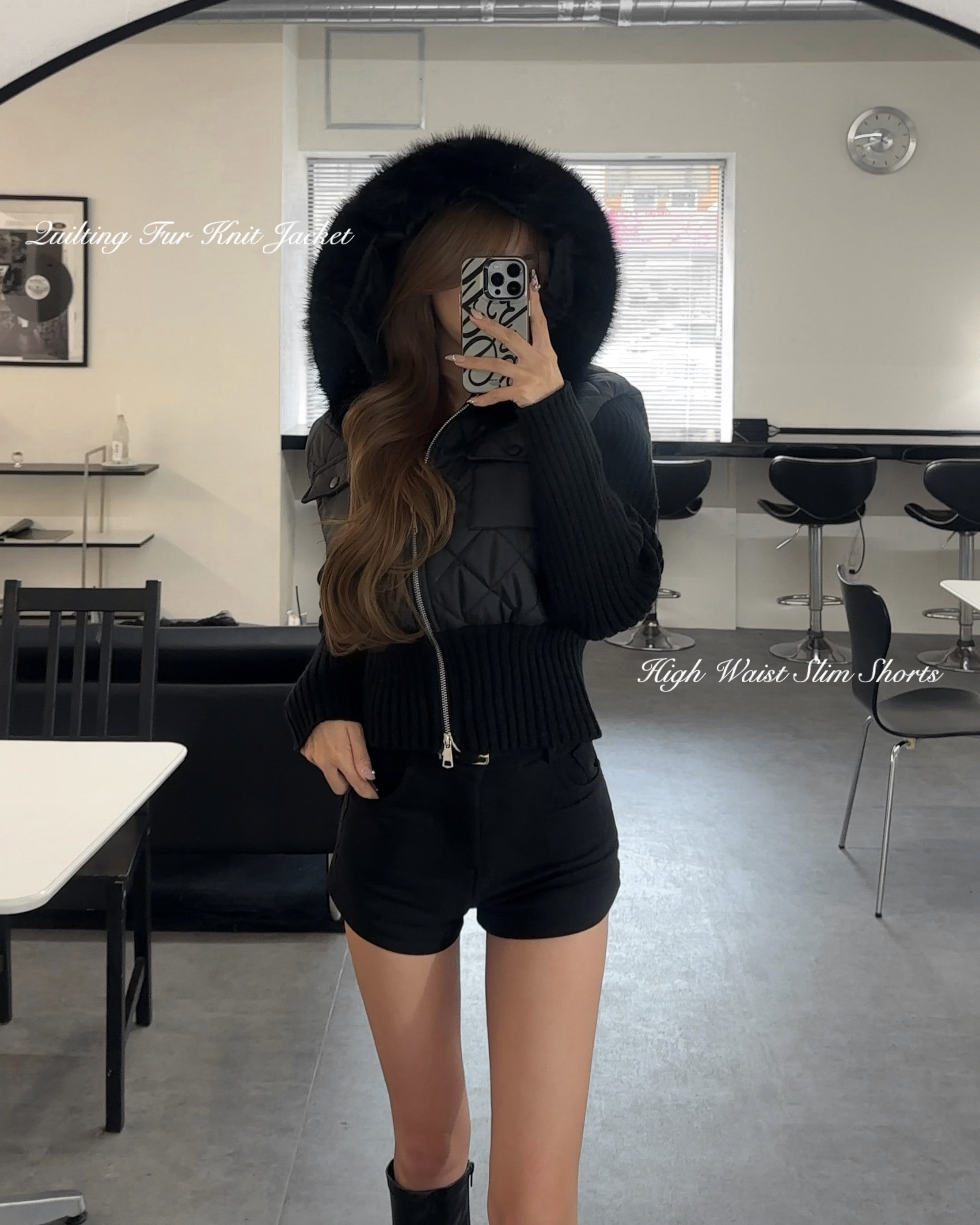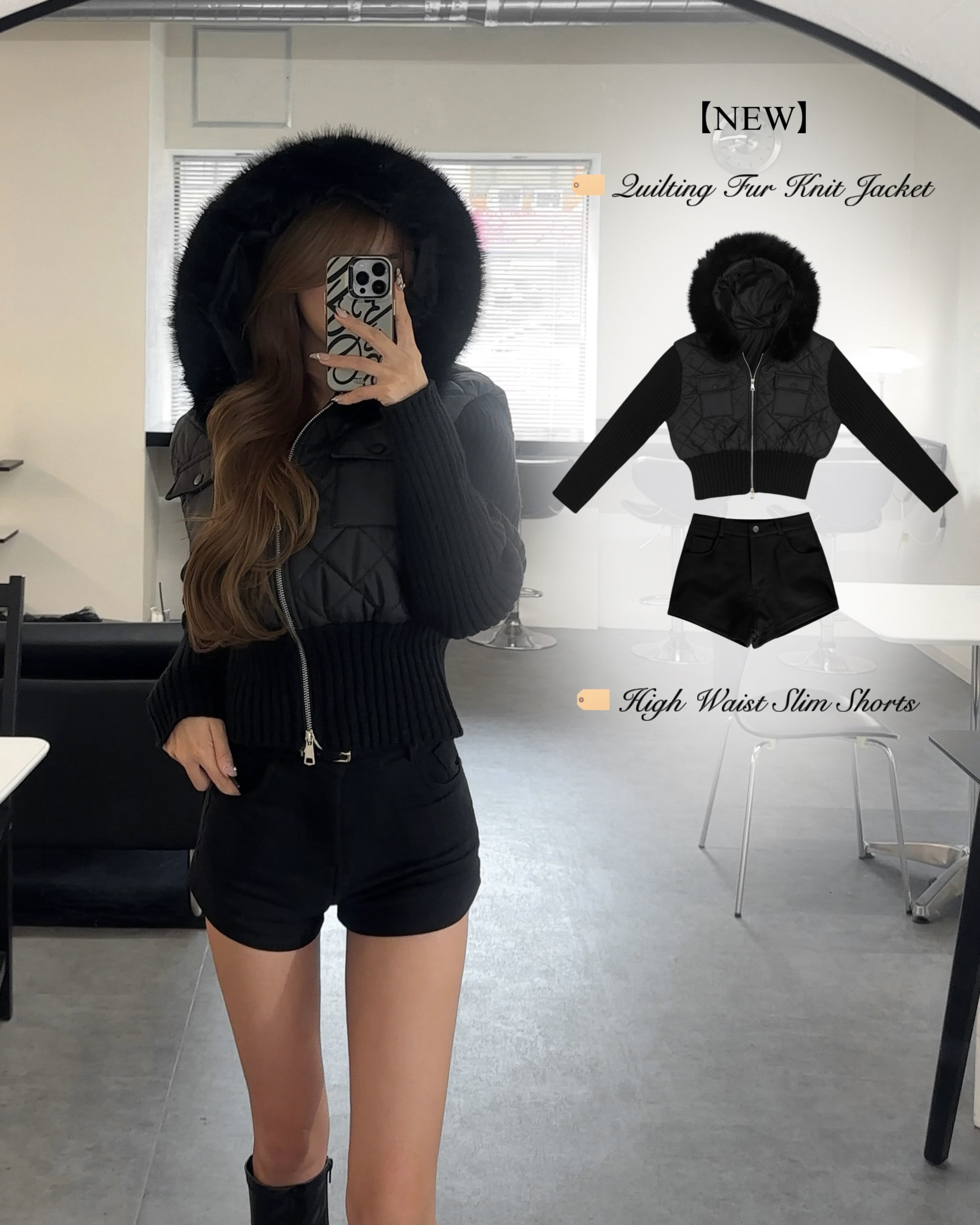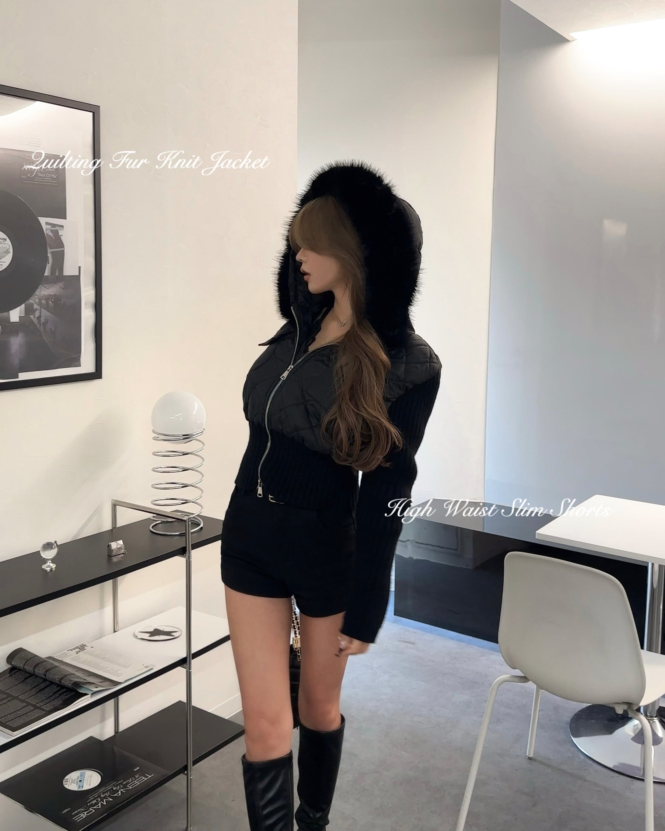 【再入荷/即納】Quilting Fur Knit Jacket【2カラー】